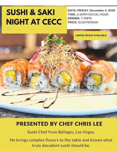 Sushi & Saki night at CECC Friday, December 4, 2020 6:30 PM 9:30 PM 18:30 21:30 Carolina Exotic Car Club 3107 Glen Royal Road Raleigh, NC, 27617 (map) Google Calendar ICS Enjoy the Sushi & Saki night at CECC Presented by Chef Chris Lee, Sushi Chef from Bellagio Las Vegas. View fullsize View fullsize View fullsize View fullsize View fullsize View fullsize View fullsize View fullsize View fullsize View fullsize